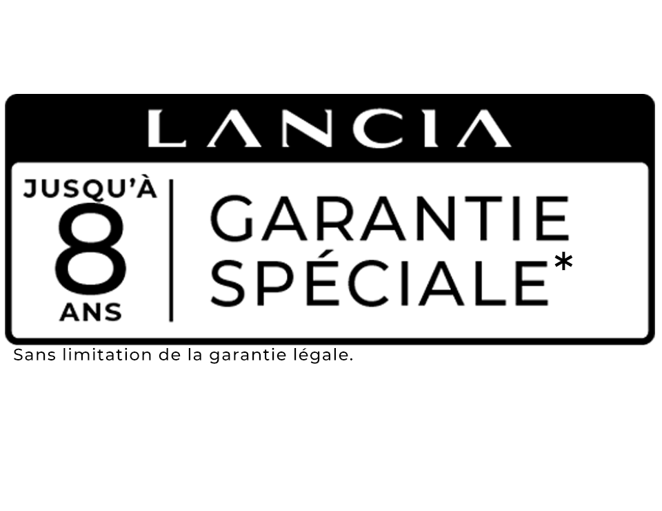 Lancia renforce votre tranquillité d’esprit avec une garantie spéciale pouvant aller jusqu’à 8 ans / 160 000 km. Grâce à un entretien régulier dans le réseau officiel Lancia participant, vous profitez automatiquement d’une protection prolongée.