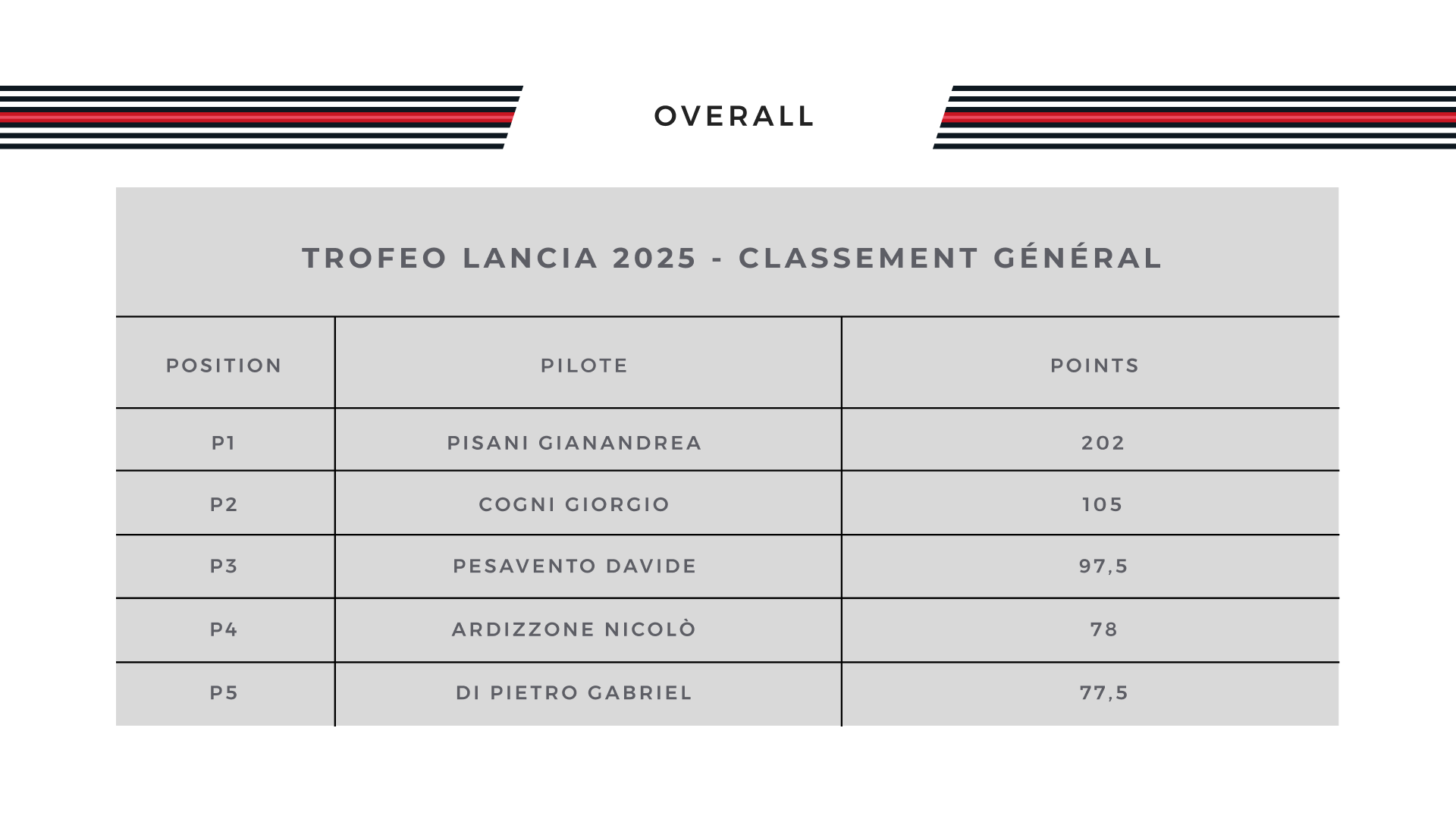 Standings - Cassino 2025