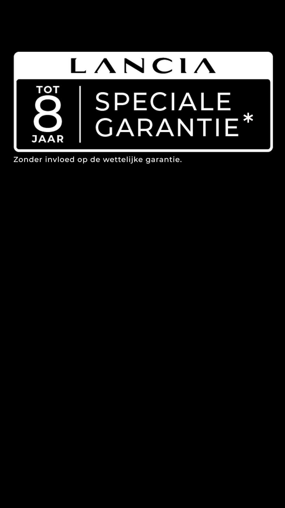 *Als u besluit om aan uw Lancia regelmatig onderhoud uit te laten voeren in het Lancia netwerk, profiteert u gratis van een speciale garantie tot het volgende reguliere onderhoudsinterval, tot een maximum van 8 jaar (inclusief de 2 jaar fabrieksgarantie) of 160.000 km, afhankelijk van wat zich het eerst voordoet. Voor de inhoud en beperkingen kunt u de website van Lancia raadplegen. Aanbieding geldig voor een nieuwe Lancia wagen aangekocht tussen 01/01/2026 en 28/02/2026 in het Belgische Lancia netwerk van officiele verkooppunten en ingeschreven in België. Niet inwisselbaar voor een gelijkwaardig voordeel.