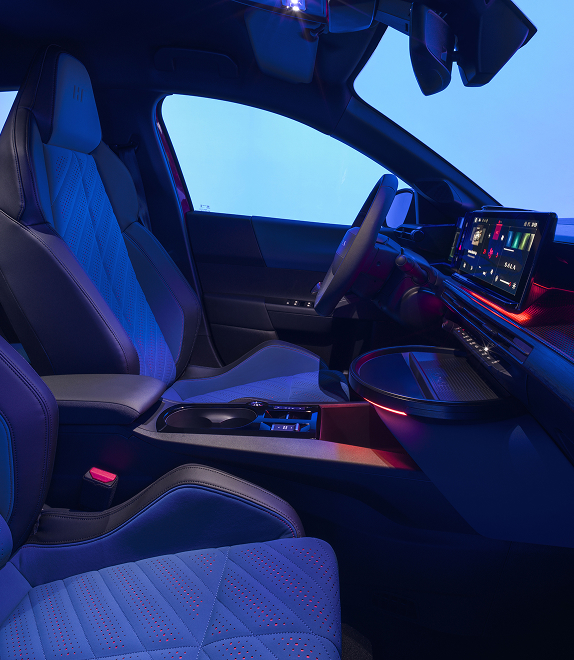Het interieur van de HF-modellen is ontworpen rond de bestuurder. Geïnspireerd op Lancia’s rallytraditie, biedt het een omgeving waarin prestaties centraal staan. Sportstoelen met verbeterde zijdelingse steun, opvallende HF-branding en hoogwaardige materialen weerspiegelen de balans tussen comfort en competitie. Elk detail is ontworpen om de interactie tussen bestuurder en auto te versterken. Het resultaat is een cockpit die de unieke HF-identiteit uitstraalt en tegelijkertijd een rijervaring biedt die draait om controle, precisie en onmiskenbaar karakter.