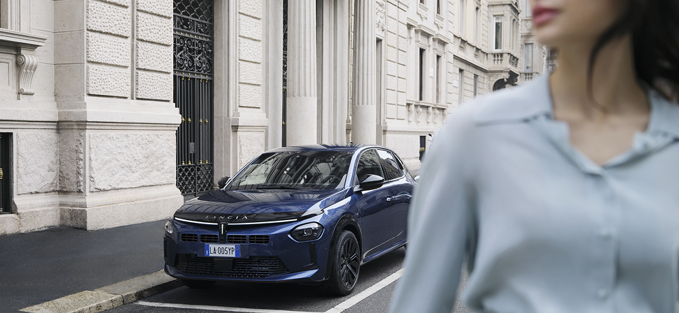 Vooraan wordt de historische grille van Lancia opnieuw geïnterpreteerd: de kelk, met drie LED-balken die de hybride auto zowel overdag als 's nachts zo herkenbaar maken. Achteraan zijn de LED-lampen een duidelijk eerbetoon aan de Lancia Stratos, de rallylegende.