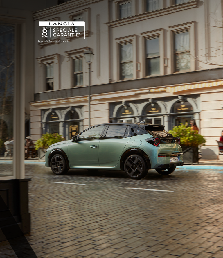 Lancia biedt een gratis speciale garantie van maximaal 6 jaar bovenop de 2-jarige fabrieksgarantie op nieuwe voertuigen en alle andere Stellantis-garanties. Samen kan dit leiden tot maximaal 8 jaar dekking. De 2-jarige fabrieksgarantie op nieuwe voertuigen en alle andere Stellantis-garanties zijn onderworpen aan de respectievelijke specifieke garantievoorwaarden.